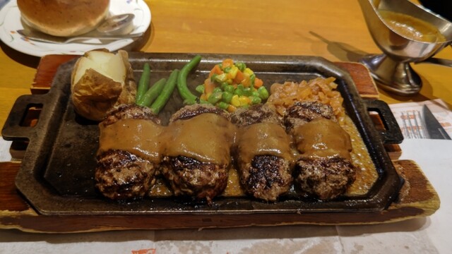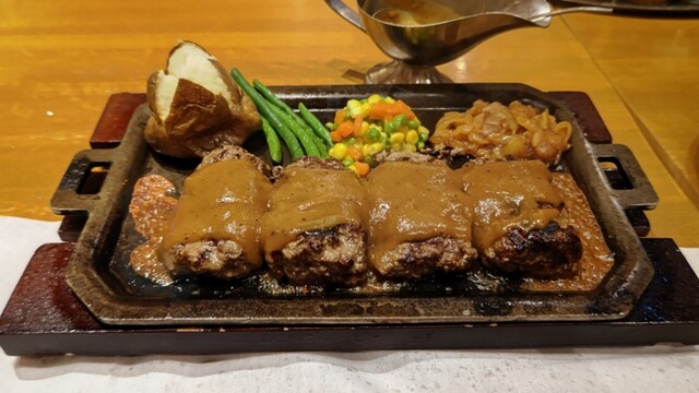 ジューシーなハンバーグからの鉄板の余熱で固くなる最後のお肉が最初から・・・