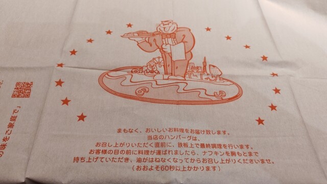 ウキウキでナプキンを広げるも鉄板の木製土台が置かれない