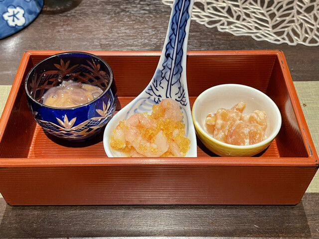 脱皮海老の丸ごと揚げと、板長のおすすめ珍味3種盛りは別注した物ですが、もう通常メニューだけでお腹いっぱいでした。