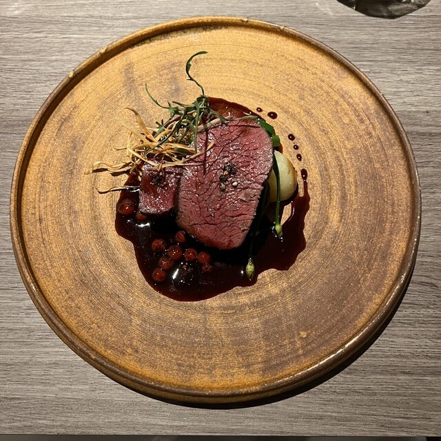 メインは好物の鹿肉。しかもかなり大きい。このボリュームはすごいです。弾力はあるが硬くは無い。しっとりとした肉質に肉の旨みが感じられる満足度の高い一品。