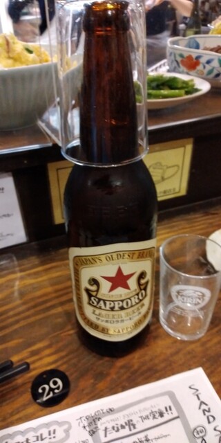 14時に行くとほぼ満席。予約していて良かったと思いました。まず明石の地ビールを注文。柑橘系の香りがして飲みやすいビールでした。ビールを飲んだ後は日本酒に切り替えました。ここにきたら明石のお酒、来楽を頼みました。飲みやすく美味しい日本酒です。それからいろいろ熱燗飲みました。