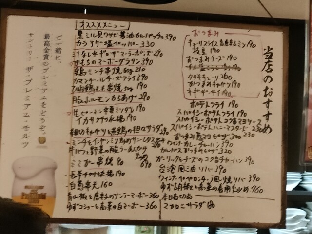頼んだのは台湾ミンチオムレツ、豚ホルモンからあげ、麻婆豆腐、イカサクサク衣揚げ、台湾風油ソバ、ハルマキ。