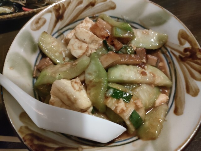まずはオリオンビールをのんでラフテー、いかすみの焼きそば、ヘチマの煮込み、モズク揚げ、ゴーヤ揚げ、厚揚げ、落花生の豆腐、ぞうすいを食べました。