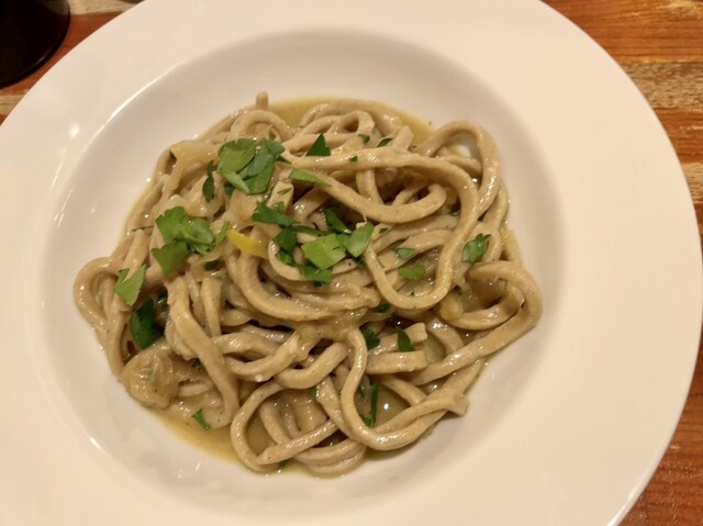 前菜、パスタ、肉料理、口にするものがぜーんぶ美味しかったです。特にもパスタ。カルボナーラと蕎麦を使ったパスタのアンチョビソースの2皿。どちらも、美味しかったー!まず、パスタ自体が美味しい。味も、歯応えも素晴らしい。それに絡むソースがまた絶品。ここでしか味わえないお料理に大満足です。イタリアンビールがすすみました^ ^
