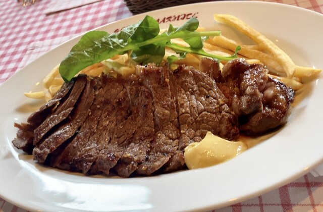 ワタシは、Aランチのサーロインステーキを選びました。具沢山のスープ、パン、サーロイン、コーヒーですが、美味しかったなー。主人のAランチ魚は、サバのお料理でしたが、トマトソースが絶品だったそう。息子のサーロインステーキランチは、盛り盛りでした。自家製ジンジャエールも辛味があって美味しかったそう。娘のCランチは、前菜の盛り合わせ、パスタ、飲み物、デザート。これまた、お洒落美味しかったようです。ハズれんね。