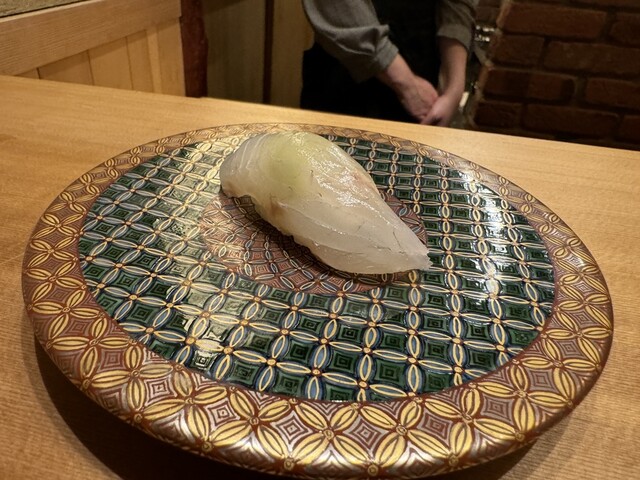 旬ど真ん中。春先で、石垣鯛が海藻を食べているこの時期ならではの香りの良さと澄んだ味わい。後口もキレがよく、白身好きにぜひ食べてほしい一貫。