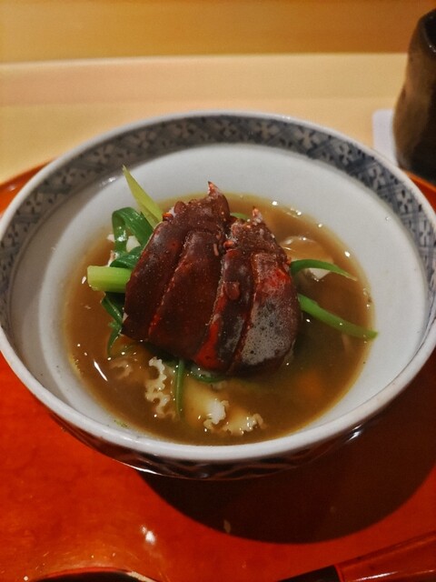 車海老と鮑の豆腐 鮪雲丹の太巻 松茸と鯛のお椀 焼スッポン 子持ち鮎焼 フォアグラとパッションフルーツの最中 八寸(鰆 帆立貝 柿なます クジラ尾身 鮑西京焼き 石川小芋の唐揚げ 干瓢 蛸 しめ鯖 無花果 ほうずき) 秋刀魚握り 牡丹海老 きのこと伊勢エビ 飛騨牛 北海道岩手産松茸御飯 赤だし 栗葛焼