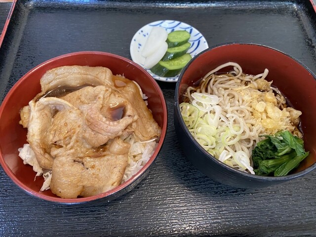 本日頂いたのは、家内がいつもの小丼+小蕎麦のセット(650円)、私が辛みおろし蕎麦。揚げなす、シソも入って夏の味。