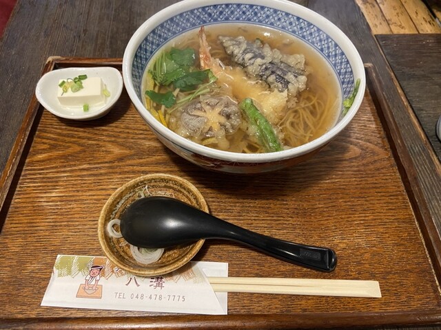 頼みましたモノは、ミニ天丼ともりそばのセット。家内は「小」天そばで、どちらも1,100円とコスパも充分。(天そばはどこが「小」だったのだろう?)