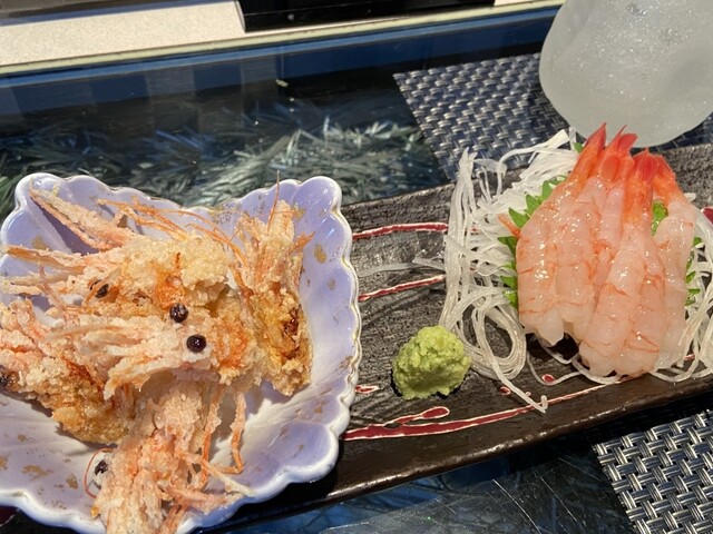 甘エビ刺身と頭の唐揚げ