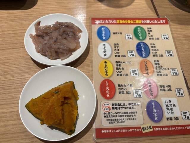 机に食べ放題のかぼちゃ、ほどなく塩辛とライス運ばれてきます。