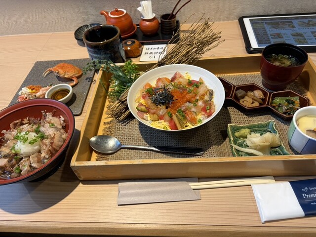 福井名物のお蕎麦、旬の握り、ちらし寿司を注文。