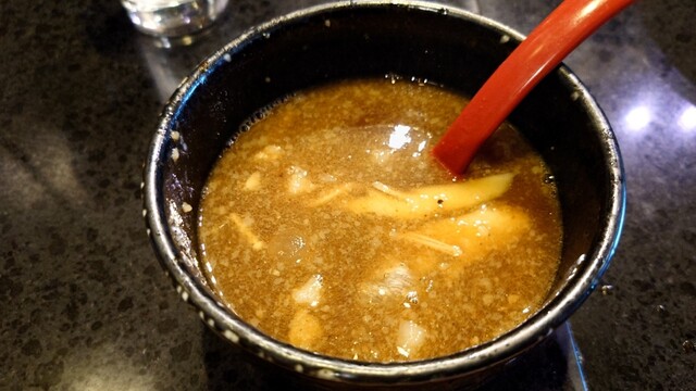 シメのスープ割りは、残っているつけ汁にきのこのスープを加えられ、それをゆっくり飲みながら完食して店を後にしました。