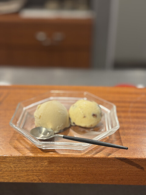 これも自家製で『バニラ、ラムレーズン、栗、ヨーグルト』