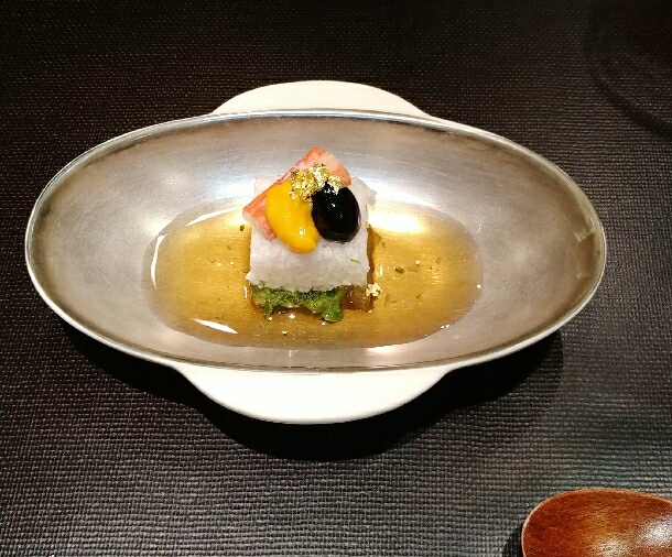 あわび、海老芋、蟹あんかけ