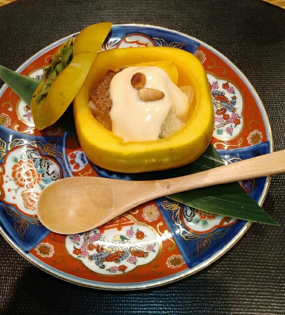 ・粟麩、さつまいも、赤こんにゃく、チーズ豆腐、蛸柔らか煮、干し柿クリームチーズ、じゃがいもハリハリ、金時草、麩まんじゅう