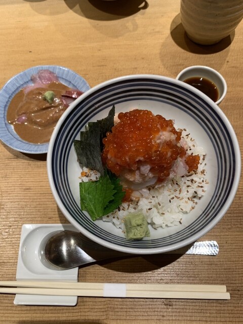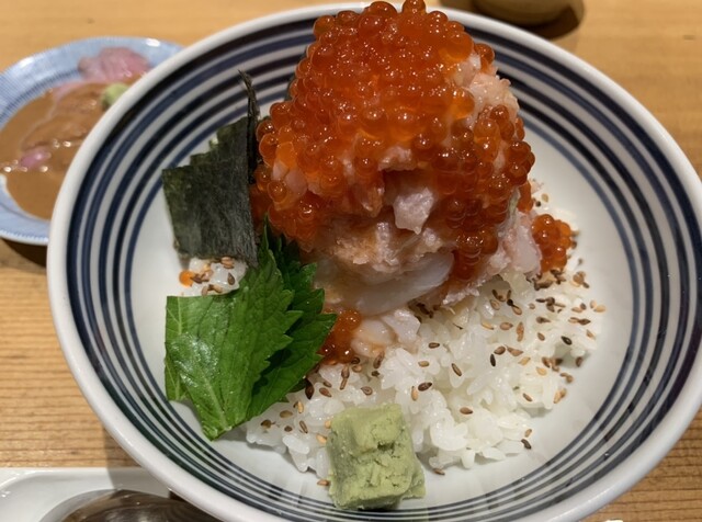 先ず見た目がGood!ご飯の上に混ぜた海鮮が山なりに盛り付けられ、イクラがかかっていました!
