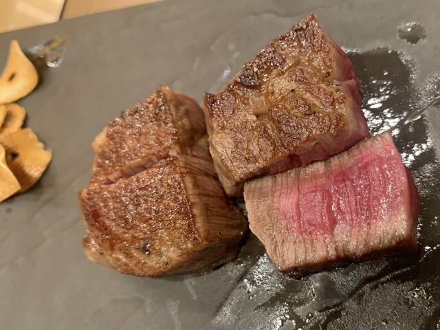メニューは店員さんお薦めの黒毛和牛(雌牛)のフィレとサーロインステーキの食べ比べを注文!