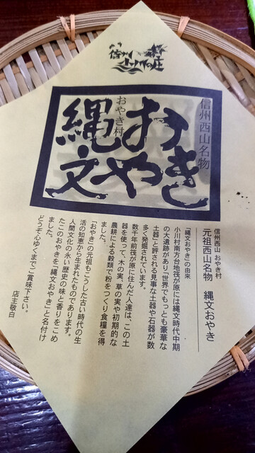 玄関入ってすぐの所の「焼きおやき 奥の部屋へどうぞ」のポップ(写真2枚目)の下には、 ” 今日の焼おやきの具 ” と思われる「しめじ野菜・りんご・切り干し大根」この三種類の文字が。