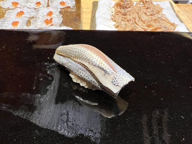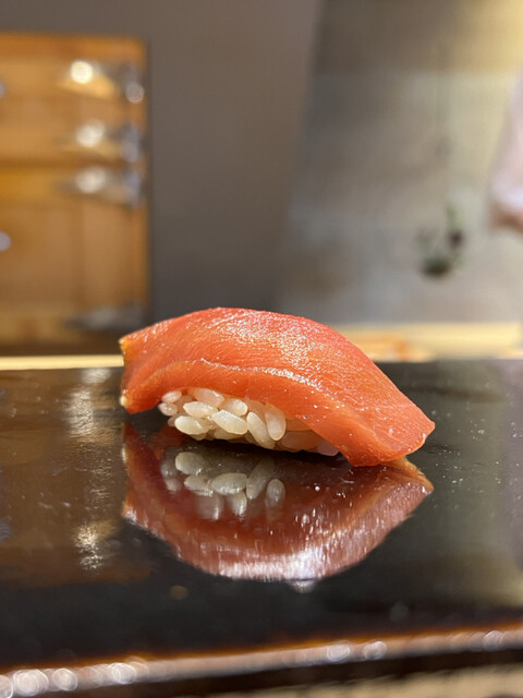 鮨の置く台にもこだわっていて、逆さに映った鮨も印象的。