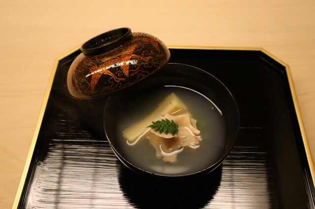 千葉県産の蛤と筍のお椀は、筍の甘みと優しいお出汁が体に染み渡ります。