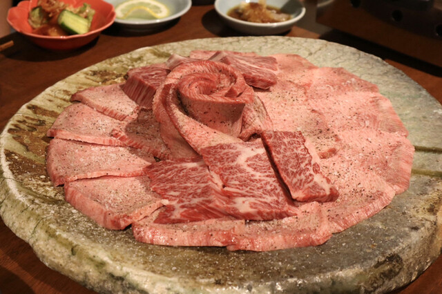 綺麗に盛り付けられた牛タンは日本一見たい光景と言っても過言ではありません。