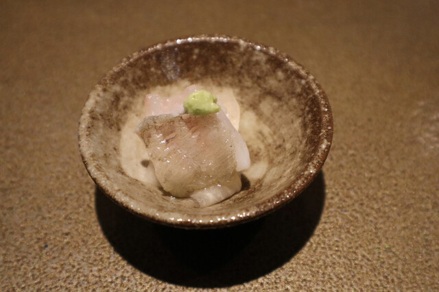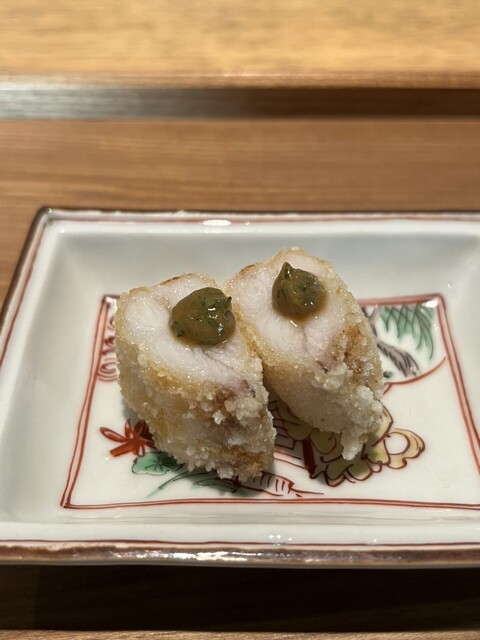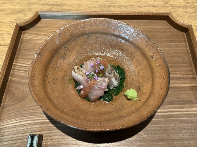 脂の乗ったアカムツに玉ねぎや茗荷、梅肉を合わせた爽やかな味わいが組み合わさって最高でした!