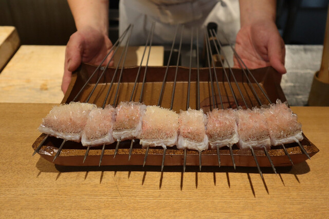 表面の松笠焼きはパリパリの食感と身の繊維がほどける感じが最高です!