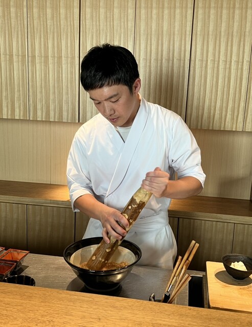 藤枝市の金ごまを炒る時の香りが店内カウンター席に広がり、白和えとして1つの立派な料理として確率されています。