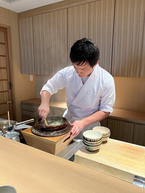 続く、九条ネギ、お揚げ、茗荷の混ぜご飯、伊勢海老のお出汁の雑炊もこの上ない美味しさでした!