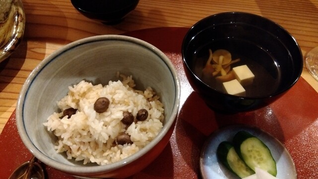 ご飯は、ムカゴご飯、御出汁の香りがして、おすましと一緒に頂きました。