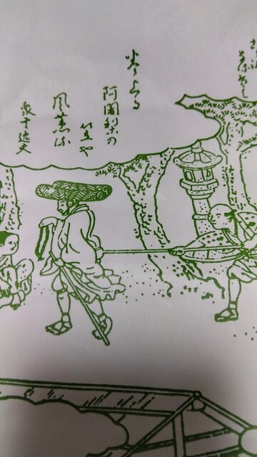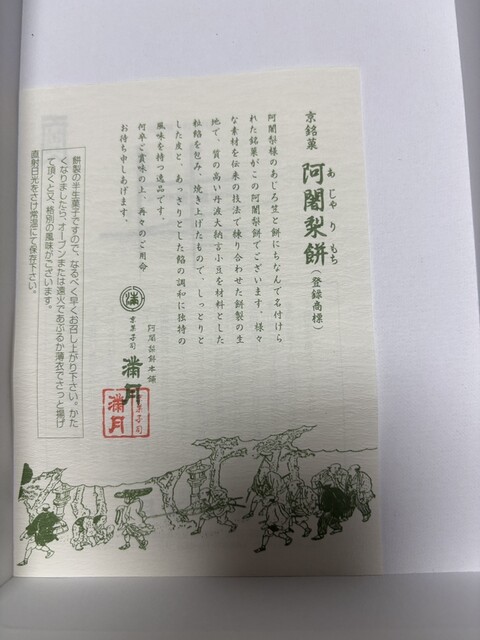 立派な箱、阿闍梨餅の由来の絵、文字が描いてある