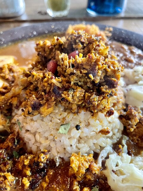 お肉のカレー+トマトカレー(お肉は花椒豆腐)¥1300