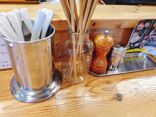 スープに薄くアブラの膜がはっています。