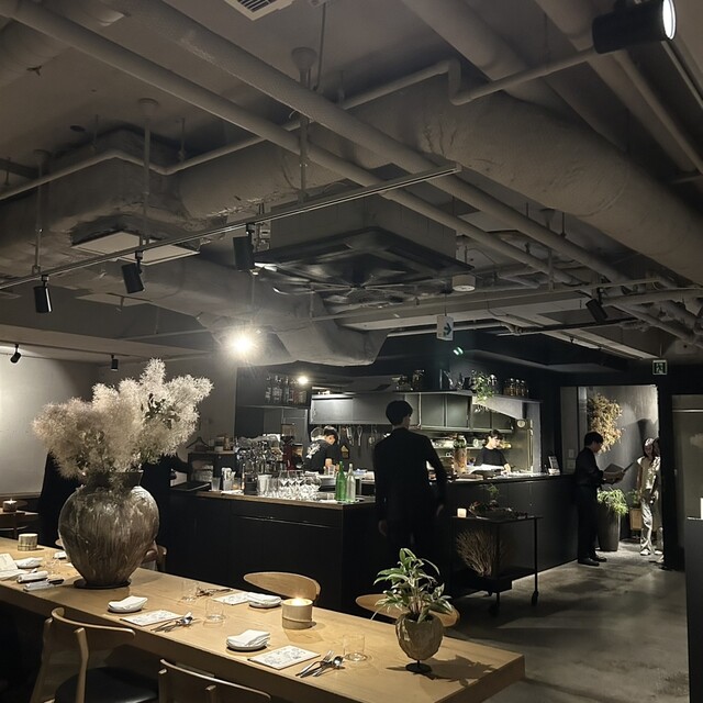 ●店内は40席でテーブル席がありました!地下1階にあるとは思えないくらい開放的で洗練されたモダンな空間でした!壁一面が緑で覆われていたり、テーブルに竹のキャンドルが置いてあったり、店内の中央に一枚板の大きなテーブルがあったりと自然を感じられる点が多くリラックスして過ごすことが出来ました全体的に女性客の利用が多い印象でした!デート、記念日、女子会にオススメだと感じましたよ!