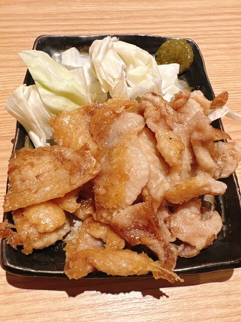 今治焼き鳥は定番の“皮”(330円)から。外がパリッと香ばしく、中はしっとり柔らか。柚子胡椒のピリッとした風味が全体を引き締めてくれる。