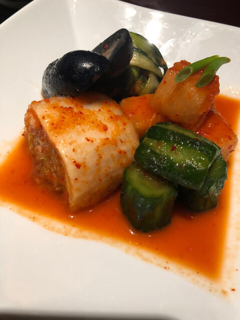 叙々苑サラダ、ユッケ、キムチは少し薄く感じましたが、、
