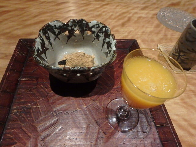 ●黒蜜きな粉わらびもち&温州みかんジュース