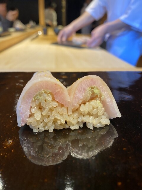 天ぷらの火入れを極めた男がつくる子持ちヤリイカはそこらの寿司屋では太刀打ちできない仕上がり。完璧に温度管理されてとろっとろに仕上げられた子持ちヤリイカはもはや飲み物。