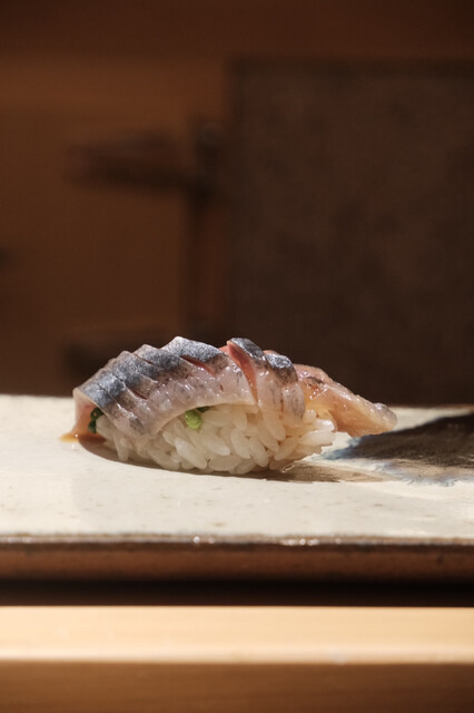 秋刀魚 とろける しっかりと脂の乗った身を支えるようにサンドされているネギ、そしてシャリが三位一体となり脳を刺激してくる