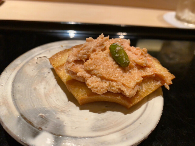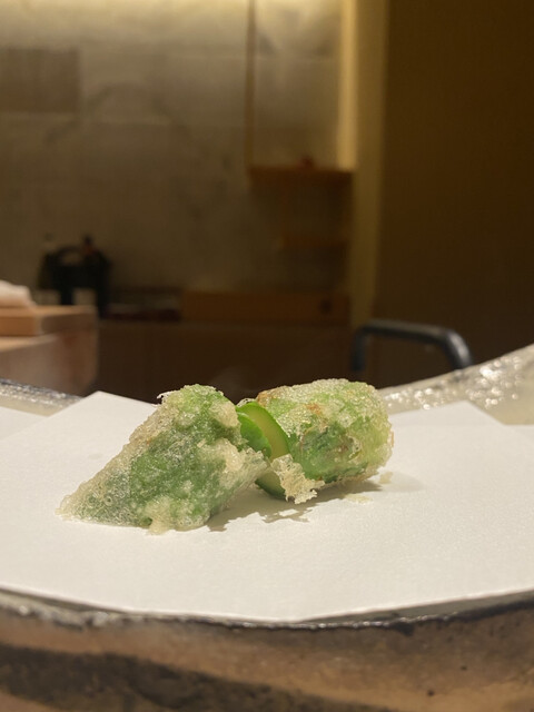 天ぷらの火入れを極めた男がつくる子持ちヤリイカはそこらの寿司屋では太刀打ちできない仕上がり。完璧に温度管理されてとろっとろに仕上げられた子持ちヤリイカはもはや飲み物。