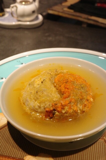 最後は鮑おこげご飯。今までに使った食材の出汁で餡をつくり、最後にかけていただきます。