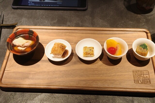 上海蟹ってこんなにいろいろな調理方法があるんや、、未知の世界。上海蟹前菜(?)セット、上海蟹の食べ比べ。