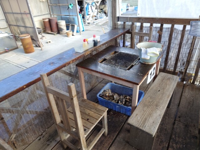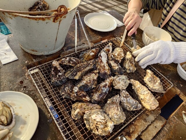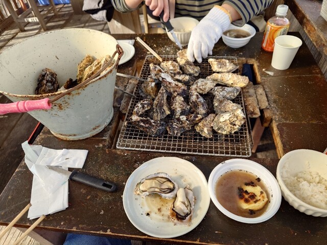 席番号のセット(手拭き・軍手・牡蠣 開けナイフ?)を渡されスタート!(^ ^)