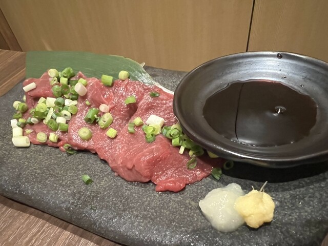 →埋めにスライスされていて食べやすく、赤身の味も臭みもなく良い。食感も柔らかめです。ニンニクが合いますね