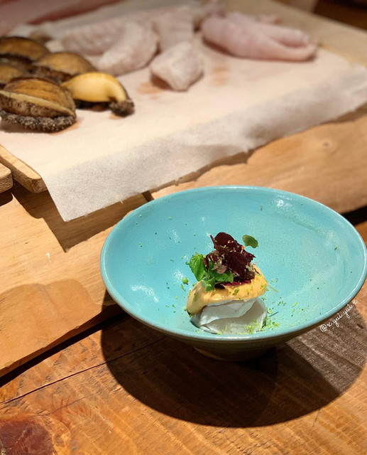 ▫️淡路島の鮑と車海老、生のからすみのソース