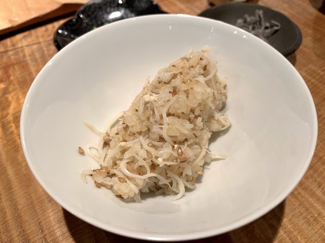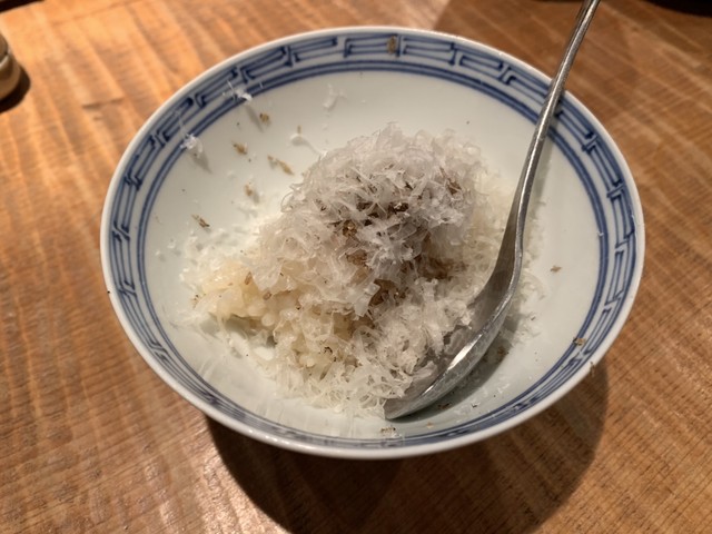 味薄めの雑炊は梅のフリーズドライとトリュフの香りがふんわり香って優しくて最高/////