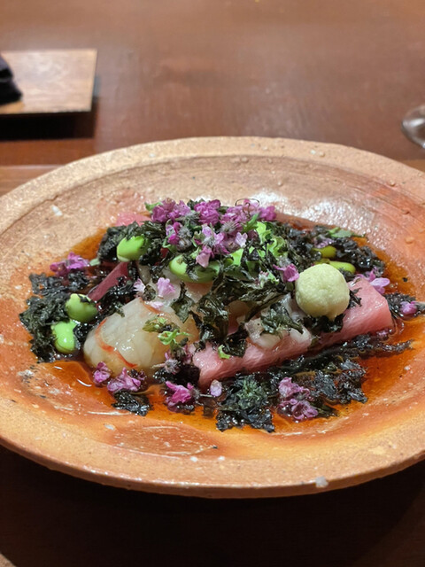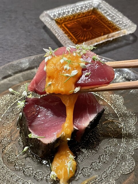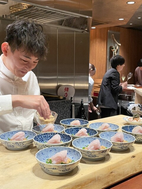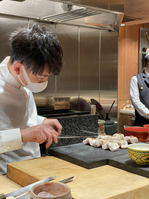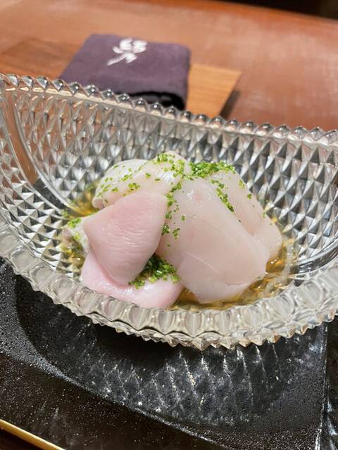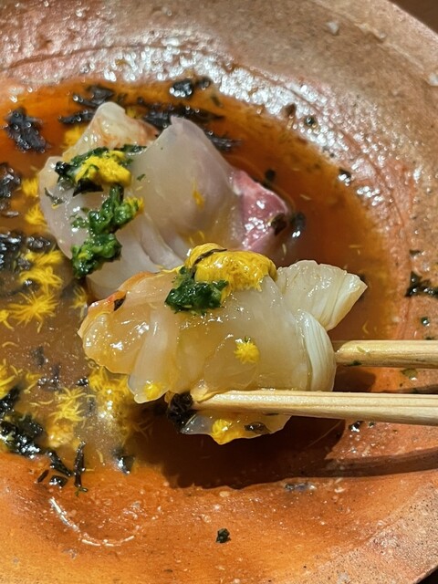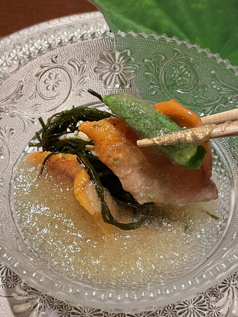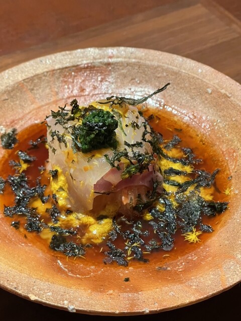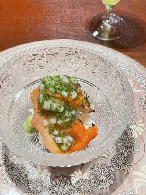 黒鮑は4時間酒蒸し、ぼたん海老は昆布締めで食感のコントラストのねっとり甘さをいくらが引き立ててくれ、ライムの香りが爽やかでおいしい✨