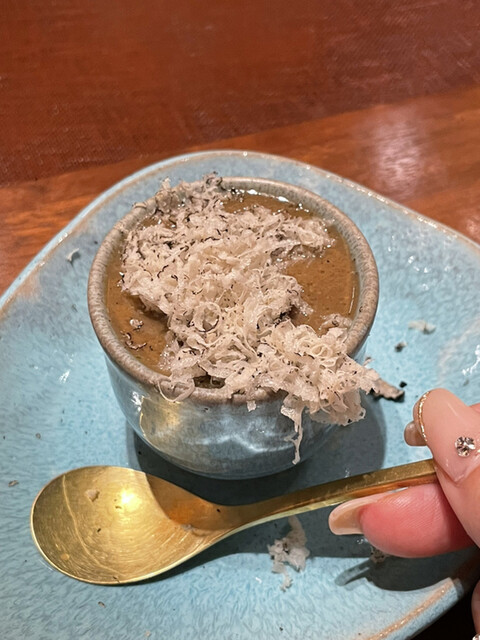 白トリュフ含めけずりすぎwww椚座牛のそぼろがあまあまで美味しいのは前からお気に入りですが、香りにめろめろすぎた✨
