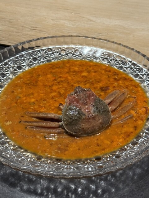 カニ身がビビるほどぎっしりで悶絶外子内子のジュレも優しく、ベルガモットの香りがアロマのよう✨